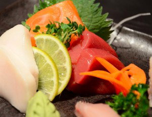 The sashimi came next, which was simply a large portion of blue fin tuna. I ordered some Ikura sashimi (salmon eggs) to go along with it, which is my very good habit. It was served to thickly sliced, again, but extremely fresh and with lots of shiso leaves and grated radish. Very satisfying.