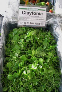 There are some excellent winter salad greens out there as well. On Saturday, I came across a new variety I had never seen before, called “Claytonia”. It is soft and almost furry, with delicate heart shaped leaves. It has a taste in between spinach and watercress. A slight touch of bitter but pleasant and elegant. Would be lovely simply steamed, served in a salad, stir fried gently in a coconut curry in place of spinach, or tossed in an omelette with some garlic, chili, and onion. It is full of polyunsaturated fatty acids from Omega 3. It also has a large amount of vitamin C. It is a great source of dietary fiber and minerals.