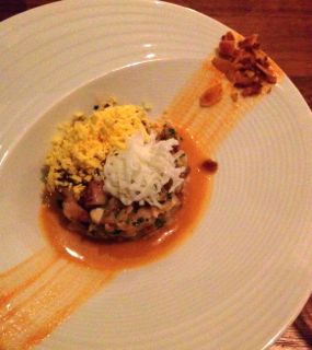 The Octopus Ceviche is soft, elegant, and complex, as is the Octopus Main, with two beautiful little legs propped up by delicate baby cabbage leaves and a gentle potato puree. Simple but interesting. There is a beautiful Pink Swordfish dish that is perfectly smoked and enhanced with Miso and a crunchy creamy al dente rice that is texturally mouthwatering.The Dorset Oyster Croquettes sound very odd, but they are truly sophisticated little pockets of creamed velvety oysters and some sort of potato, and there is a beautiful little basil dressing that sort of livens everything up. The Sea Bass Ceviche is also a little gem, with Peruvian flavors sort of weaving through it. Even the cheesecake we had was very special, although also complex. It was mild and neutral, almost like a palette cleanser, with a tiny little spoonful of lovely soft vanilla ice cream on the side. All of the dishes are quite stunning to look at as well, artfully put together so each dish feels very special, like opening a beautifully wrapped gift.