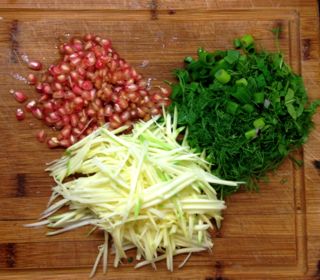 1/4 shredded green mango (green apple could work fine here, too)
