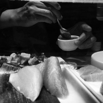 This spot is a little Japanese gem. It is tiny, charming, and elegant both in interior and in taste. I prefer to sit upstairs at the little sushi counter, which has six cute stools. Although there are small tables downstairs, it seems somehow insulting to not pay respect to the three talented and very entertaining sushi chefs preparing your dinner. It is reminiscent of the tiny Japanese sushi counters in Japan, where it seems both a pleasure and an honour to be able to watch the chefs carefully and precisely slice and prepare the exquisite fish on offer. The restaurant is sweetly hidden away on a little street in Marylebourne, as if on purpose to add to it’s specialness. Somehow this food is sexy. I cant explain it, but if food CAN be sexy, then this place nails it. I also like how its not trying to be glamorous and in your face like most of the higher end Japanese spots in London do, and this chillness factor adds a lot of points. The restaurant was opened by Ex-Nobu Chef Tomonari Chiba, so some of the dishes are Nobu inspired with a lot of Japanese-Peruvian fusions going on, but its more refrained and less glossy than Nobu, more elegant and fresh somehow. The chef really likes his truffle, and sprinkles it throughout the menu, which you would not see so much of at Nobu, and it feels very well thought out and original, whereareas Nobu seems almost like an institution and a little dated.