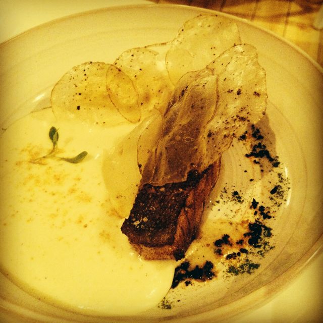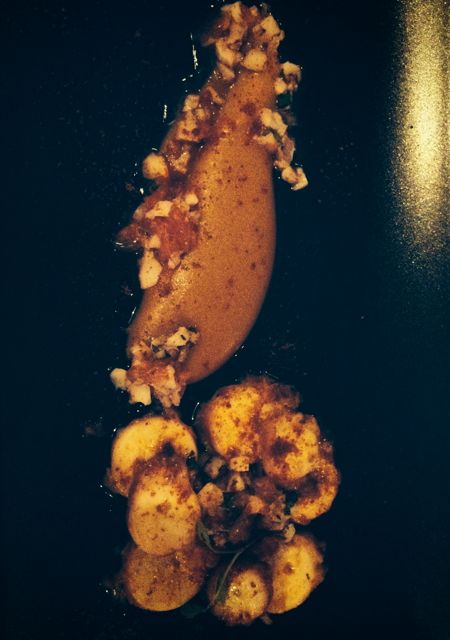 Next arriving was the Octopus. It was super soft, melting on your tongue- as the way it should be, but somehow in the UK barely ever is. It was paired with a grapefruit potato sauce with tiny flecks of octopus strewn into it. Elegant and delicate and rich simultaneously. Sadly, there was about half a tentacle. I am a small person and I dont eat very much. But I really thought genuinely this was a little silly. And it was such a shame because it was so wonderful.