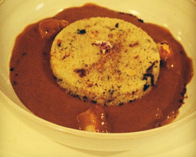 Next we tried the Lobster Couscous. We asked our server if there were actual bits of lobster in the dish, as we weren’t really all that interested in the couscous. She told us pretty adamantly that there was definitely big chunks of lobster in it. The dish arrived and there were three miniscule pieces of lobster on the dish- barely a teaspoon in size…and a huge mound of soggy couscous (not the fluffy Moorish kind I am used to, perhaps this was a different variety, but certainly not a better one?), which lacked in seasoning and flavour to be frank. There were some almonds for texture, but it was screaming for some herbs and salt in the least. The bisque was a thick creamy velvety lobster soup (great texture), which was also very under seasoned, and also had such a weak taste of lobster; I was confused we had possibly ordered the wrong thing at first. This dish really disappointed us and although has a chance of success, (by maybe adding more protein and less couscous and bisque?) the seasoning here was just non-existent. I understand restrain…but it was taken a little far here…