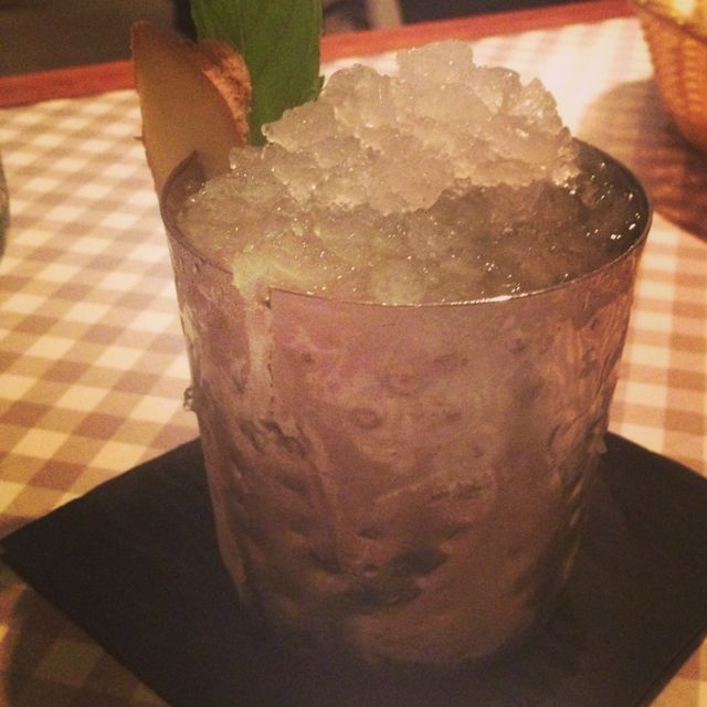 We started with two cocktails, the Ginger Julip and a classic Negroni. The Julip was very gingery and very icey, but the mint took over. It was served in very cool silver glass though, I just wished it wasn’t so mint tea-ish. Not bad, just seemed a little sloppy in deliverance. My date’s negroni was good though, classic, bitter, and strong. The wine list was rather nice, lots of good choices in the medium price range, which was refreshing against the high prices of the food. We had a lovely Burgundy for 36 quid, which I felt was a very good price for such a big developed wine.