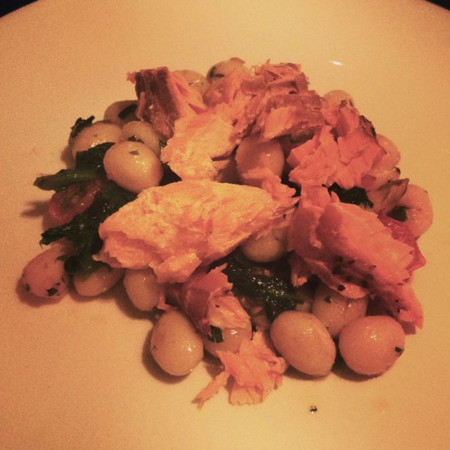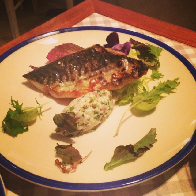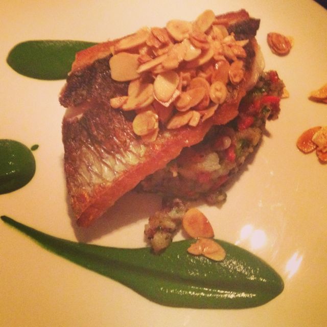 Next came our starters. We had the trout, which was perfectly cooked and everything you want it to be- soft, salty, and smoky. But somehow it was too simple within the dish as a whole. There were some bland white beans, a bit of steamed spinach and a touch of oil. No herbs, no sauce, no imagination. And it made me bored. We also had the mackerel. First of all the skin was not crispy, which is always a disappointment when it come to this kind of fish, as the oily skin of mackerel is the best part. Here it was soggy and ignored. Not to mention the fish was also undercooked. The seasoning was simply non-existent. There was an oval mound of mackerel tartar on the dish as well, which seemed like a mushy afterthought, although it looked nice enough. It just had no flavor. Mackerel is big and bold and in your face no? The dish itself was very fresh, and had a sort of elegance to it…but like the dining room, it lacked character, excitement, soul…some simple seasoning and fresh herbs would have really lent a hand.