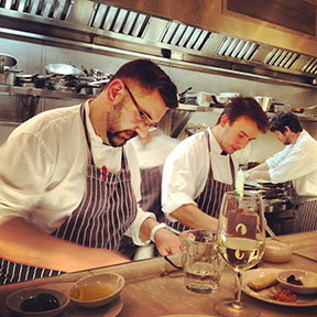 I was lucky enough to live in Italy for about two years, with an extensive amount of time spent in Tuscany and Rome. Half this time was spent eating. Trust me. The exposure it had on my cooking style and taste buds are more than I can even begin to explain, but because of this exposure, I can and do recognize incredibly good Italian restaurants when see them. Bocca di Lupo is one of them. I came across this place by a good friend who is married to an Italian and with whom I take Italian classes with in fact. We have foodie conversations in Italian, which is quite funny as we both know all the weird crazy specialty Italian dishes. So when she mentioned this place, I had a hunch it would be pretty incredible…so another friend and I decided to do the truffle tasting, which she had highly recommended. We could only book the bar, but that turned out to be the best seat in the house really, as the food theatre that was going on couldn’t have been cooler. I also really like the simplicity and chillness of the place- no pretence and superficialness anywhere in sight. Even the pots and pans had uniformity to them, all silver and shining and noticeably inexpensive. The chefs at work had a sort of calmness that was pretty impressive, considering the incredibly bustling crowd. All very slick and all very Roman.