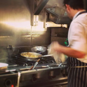 I am dying to try the braised Escarole with anchovy, pine nuts, and raisins and the Cime di Rapa with garlic and chilli, which is a dish from Puglia that is also very hard to find if at all here in London. It is a lovely bitter green that is sort of like broccoli rabe. Again, a dish chosen for its uniqueness and speciality. I simply love that this is a side dish. A little boy and his father sat next to us and I spied him happily slurping down a small plate of perfect looking Spaghettini (little spaghetti) with a side of steaming mussels served with big chunks of celery, fennel, and thyme. I cant wait to keep coming back and trying all the little dishes as there are so many to choose from and each seem so special and well thought out.
