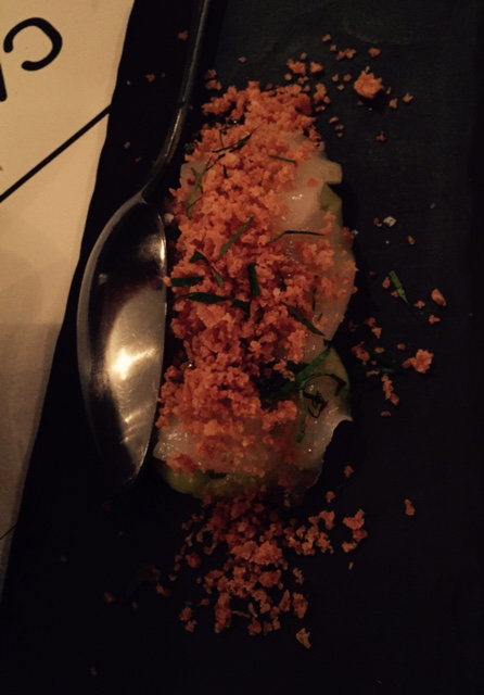 We also tasted the raw scallop and avocado dish with tiny crunchy breadcrumbs sprinkled generously on top. The flavours were very soft and gentle, with only the breadcrumbs to give a touch of texture. My mouth was hungry for a bit more excitement, although I appreciated its elegance.