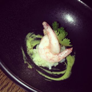 The amuse bouse consisted of two tiny sweet succulent prawns gently laid atop a salt cod, avocado, and potato purée, reminding me of the Spanish and Portuguese dish, Bacala. It was extremely soft in flavour and a quiet serene opening to the meal.