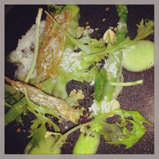 When we were seated we were served a beautiful warm straight from the oven loaf of bread crusted in oats and grains and simply served with a soft clean Spanish olive oil. Apparently he is one of six owners in the world to a very special olive extraction machine. He also has a policy of no butter. All I can say is that it was purist (in a good way) and delicious.