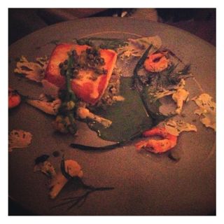 I ordered a starter as my main, as I could not resist the crab, and the waiter lovingly gave me a larger portion. It was gentle and soft in texture and melted on my tongue. A crisp slightly pickled radish gave it contrast and a bit of spunk. Wild garlic perfumed the meat, which I thought a beautiful pairing as regular garlic would have been almost to harsh. Baby new potatoes dotted the plate, but I found them a little boring and too many of them. In fact I had my dinner date eat most of them. Crunchy salted fennel or slightly grilled cucumber could have been a much more interesting match. We also ordered the icelandic salted cod, which is a traditional Icelandic dish. Usually one has to “de-salt” the cod over a period of days, changing the water and nursing it back to life. It is traditional all over Europe, this ancient method of pickling fish, and one of my favourites. Here it is served with corn tasting and nutty quinoa, an interesting and playful choice, cauliflower, sorrel, and a dose of prawns dancing about the plate. I loved the paper thin slices of cauliflower, again hitting the nutty vibe of the quinoa. I really enjoy how “chef” creates so many textures, but keeps it as if a soft romantic symphony, everything gently and soothingly crooning together.